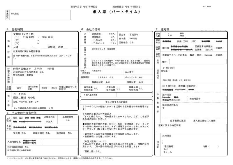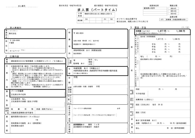 | A7 | 雇用形態と契約期間の明示 | B | パート雇用だが更新条件「原則更新」のみ |