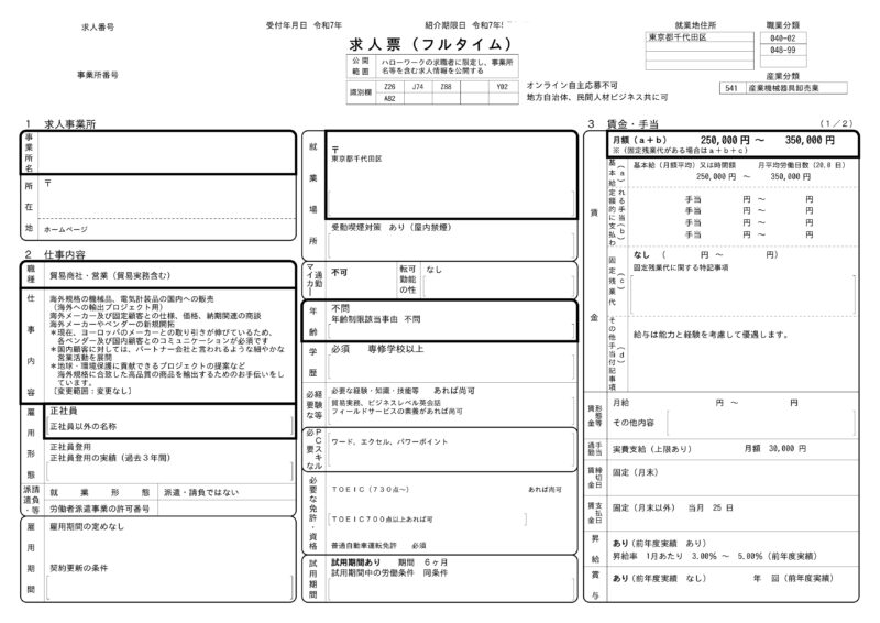 ハローワーク求人票診断レポート-東京都産業機械貿易商社