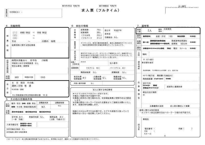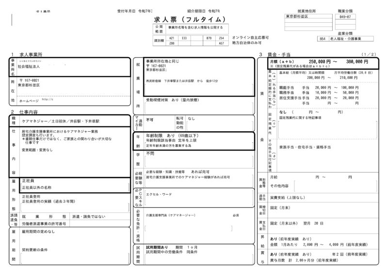 ハローワーク求人票診断レポート-東京都老人福祉ケアマネージャー