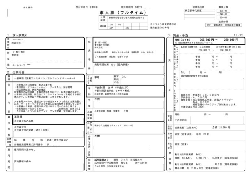 ハローワーク求人票診断レポート-東京都電気通信一般事務